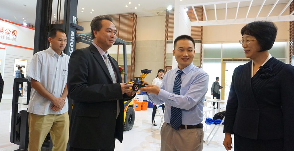 2017年7月13日 – 柬埔寨,金边 – 7月13至16日,第二届澜沧江-湄公河国家经济技术博览会在柬埔寨金边钻石岛会展中心隆重举行。作为此次参展面积最大的企业之一,球友会体育携全新H系列856球友会(中国),E系列922挖掘机,压路机6122E和叉车CPCD30以及球友会体育自主研发制造的专业石材叉装车CLGF200 5台专业设备亮相博览会。其中,球友会体育F200叉装车是首次在海外展会展出。此前,球友会体育叉装车已经成功助力柬埔寨采石协会的大理石开采和搬运工作,其强悍的承载能力,简便灵活的操控性能以及在恶劣施工条件下的高适应性获得用户的一致好评。