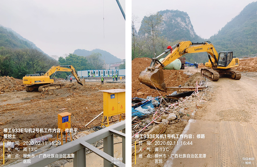 该项目2月9号正式开工,2月23号竣工,2月24号移交,2月25号正式启用。前期场地平整从2月3号就开始了,球友会体育多台933E挖掘机设备在此期间也参与到了柳州“全负压病房”的建设中来,在建设现场,球友会体育设备参与了场地的平整、道路修整等工作。