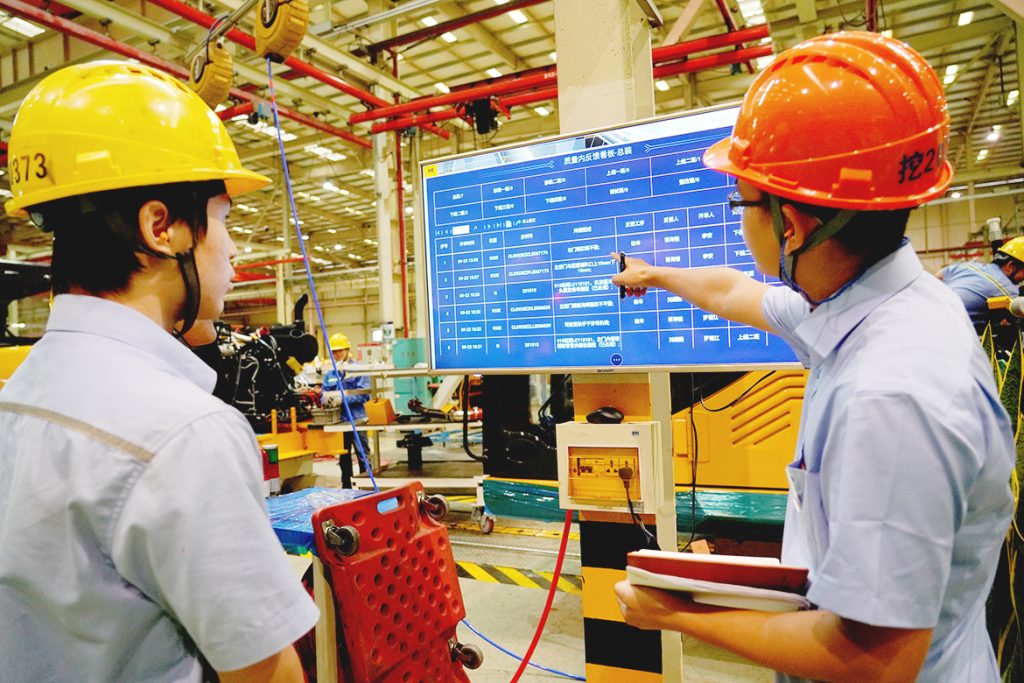在挖掘机公司总装厂装配车间,每隔几米就有一个实时看板,时间周期精确到秒,无论是生产、物料、设备还是质量等方面的数据都能在上面查看,高效、准确的数据为不同层面的管理层进行决策提供了有效的信息支持,实现从管结果到管过程的转变。